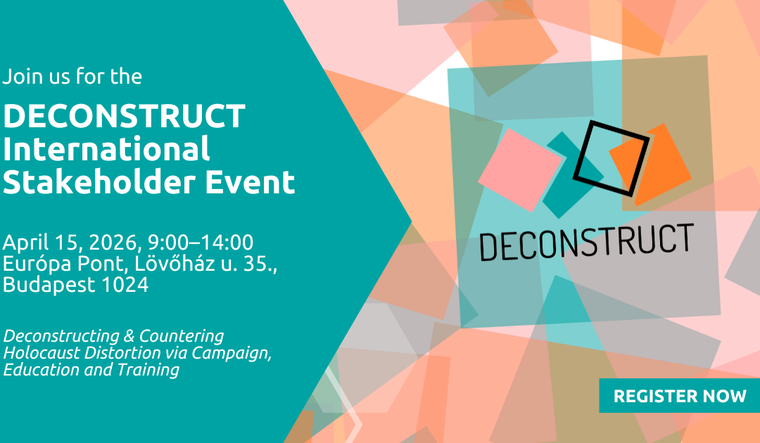 On 15 April 2026, the Zachor Foundation for Social Remembrance, together with HÉTFA Research Institute and their international consortium partners, will host the DECONSTRUCT International Stakeholder Event in Budapest. The event will take place at Európa Pont (Lövőház u. 35., Budapest, 1024, Hungary) between 9:00 and 14:00, with the main programme running from 9:00 to 13:00, followed by networking. The event will be held in English with simultaneous translation.